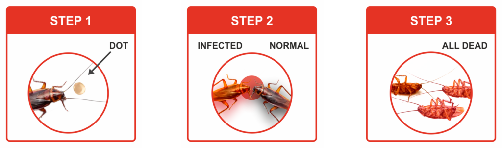 Cockroaches eat gel bait & spread it to their colony
